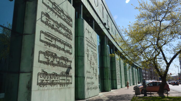 Lilianna has taken pictures of the front wall of the building of the University of Warsaw Library. "There are eight huge copper boards with texts from different cultures and times. Those boards resemble open books. This is one of the symbolic meanings of the architecture. It was an idea of the architect of the building, Professor Marek Budzyński to show that a library is a very meaningful and important place. It was part of the project of the building to place the boards on the front wall," she says.