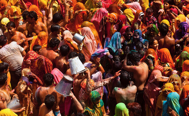 Kulshreshta says that “Nothing quite prepares you for the overwhelming sensory experience of Braj ki Holi. Everywhere, color and chaos reign supreme. Celebrations can last for more than two weeks, with a thick haze of gulaal covering everything in sight. The air is filled with the scent of bhang (a cannabis-based drink), freshly made sweets, and the mingling sounds of devotional songs, laughter, and festive chants.”
