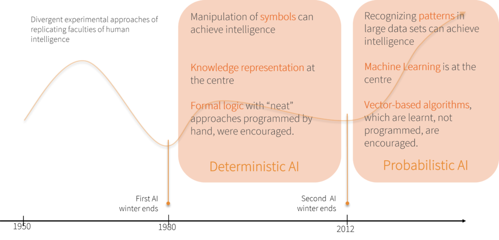 - From early 80s to 2012 - when Deterministic AI was in focus, with the following salient points: